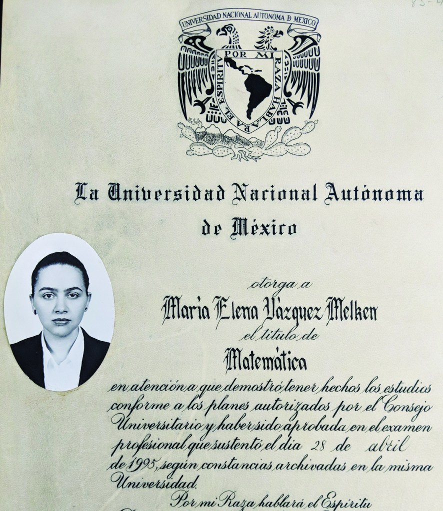 I had a happy childhood, surrounded by a strong and loving family. I remember fondly the frequent weekend outings to the city’s parks or one of the forests in the outskirts of Mexico City. As a little child I loved counting and finding patterns. Every time I had a set of items at hand, I sorted them into similar shapes and colors, and I counted them. I also loved to see geometrical patterns around me. These ranged from daily occurrences on tiled floors and walls, to the painted or embroidered patterns on the artisan work that we saw during our trips. I admired those extraordinary geometrical shapes carved into the stone temples of the Aztec, Mayan, Olmec, Toltec, and Zapotec cultures. I also saw patterns in nature, twisted twigs, entangled seaweed, the intertwining of the waves, and the interplay of light and movement during a sunset on the water. To me, math went beyond numbers. It also consisted of shapes, colors and movement, and it was partly art. As the years passed, my love for mathematics grew. Mathematics was everywhere, but the idea of devoting my life to it, was quite abstract. I did not know that one could do math for a living, and thus I assumed that I would become an engineer, like my father and grandfather.